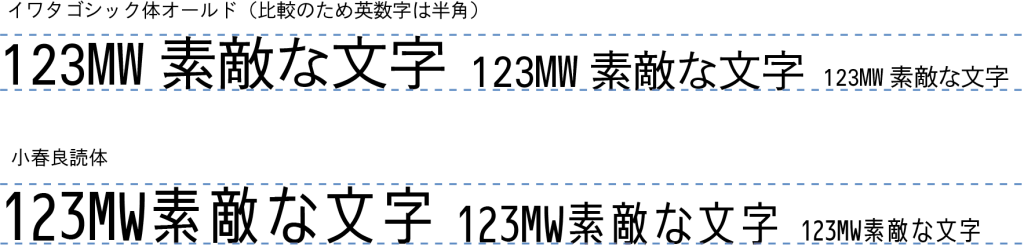 ※「イワタゴシック体オールド」と「小春良読体」を比較しています
