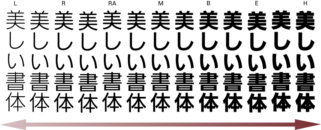 を損なうことなく文字の太さを「L」から「H」の間でシームレスに変更することができます。
