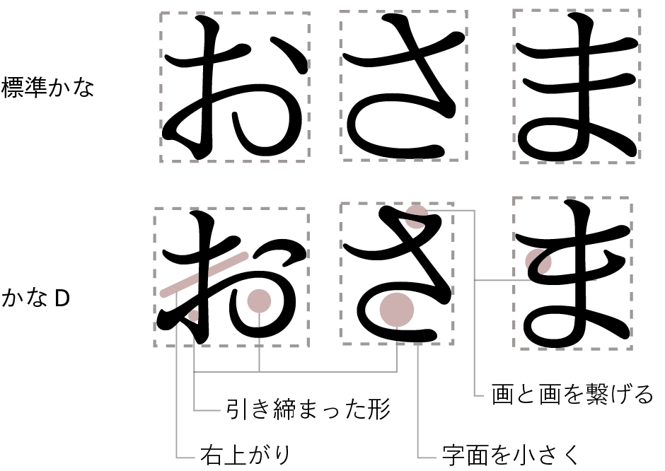 「かなD」は金属活字の字形を踏襲したオールドスタイルのデザインです。
