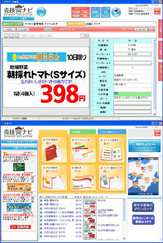 | 事例紹介文 | 「売技ナビゲーション」は、小売店のビジュアル・マーチャンダイジングを整備し店頭販促を支援するASPサービスです。プライスPOPや情報POP、プライスカードなどの販促資材作成機能に イワタUDフォントを搭載しています。 |
